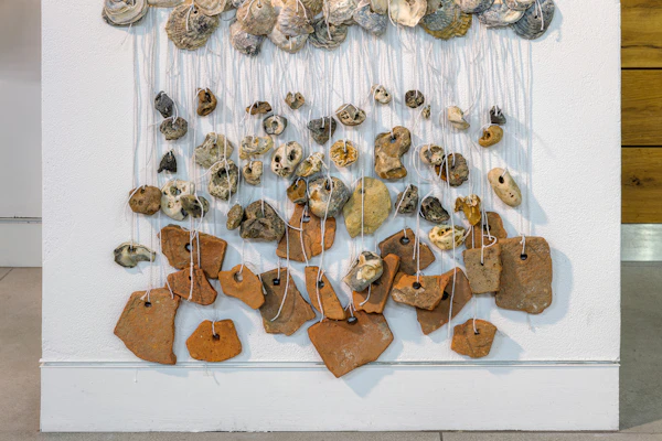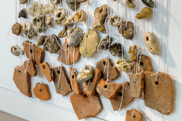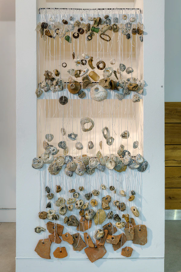 This site responsive work ‘In search of holes’ was created for a London gallery space close to the site of the hidden Wallbrook river as a way of thinking about route of the hidden river and how it trickles out through a hole close to the Thames nearby. These holes suggest possibilities for attachment, for joining up together as well as offering portals into other worlds.